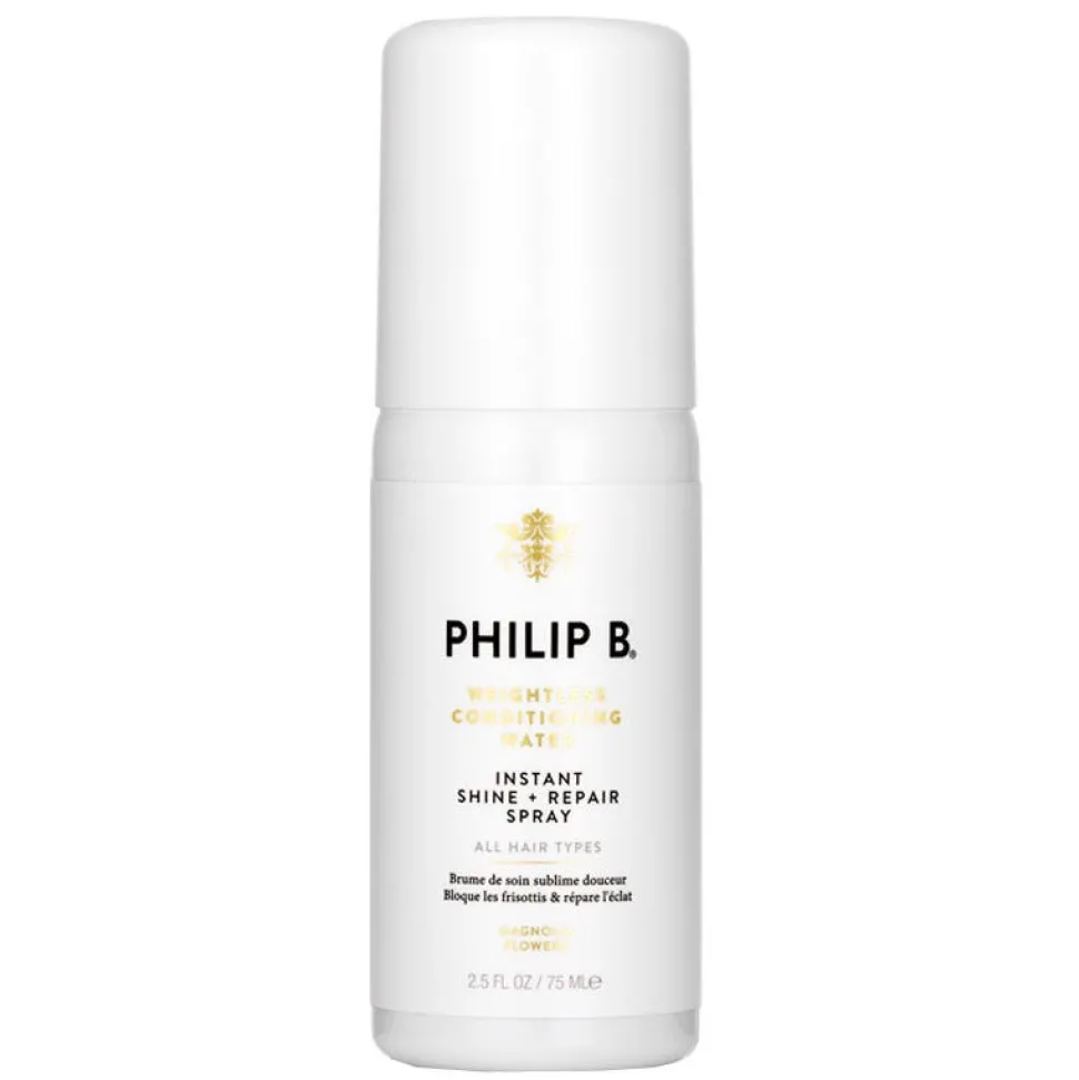 Das neue Philip B. Weightless Conditioning Water spendet dank pflegender Essenzen sofortige Feuchtigkeit und versorgt die Haare mit einer Extra-Portion Glanz. Die im Glanz-Spray enthaltenen hochwertigen, nährstoffhaltigen Pflanzen-Extrakte vitalisieren das Haar und machen es unwiderstehlich weich und seidig. Widerspenstiges Haar wird gebändigt, Farben leuchten wieder und matte, trockene Strähnen werden wieder geschmeidig.