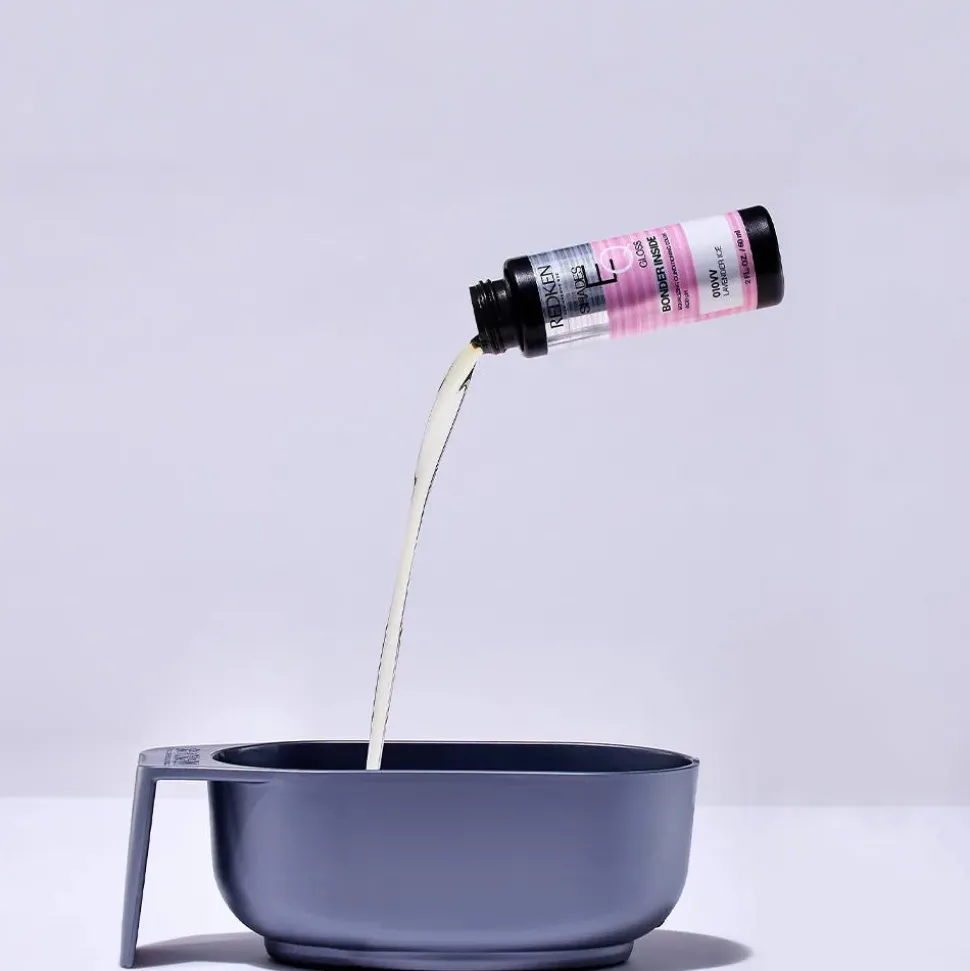 Mische Redken Shades EQ Bonder Inside im Verhältnis von 1:1 nur mit Shades EQ Processing Solution. Die Einwirkzeit beträgt 20 Minuten. Für bis zu 70% Grauhaarabdeckung verlängert sich die Einwirkzeit auf bis zu 40 Minuten. Shades EQ Gloss Crystal Clear kann mit jedem Farbton gemischt werden, um den Ton der Formel zu verringern oder aufzuhellen.