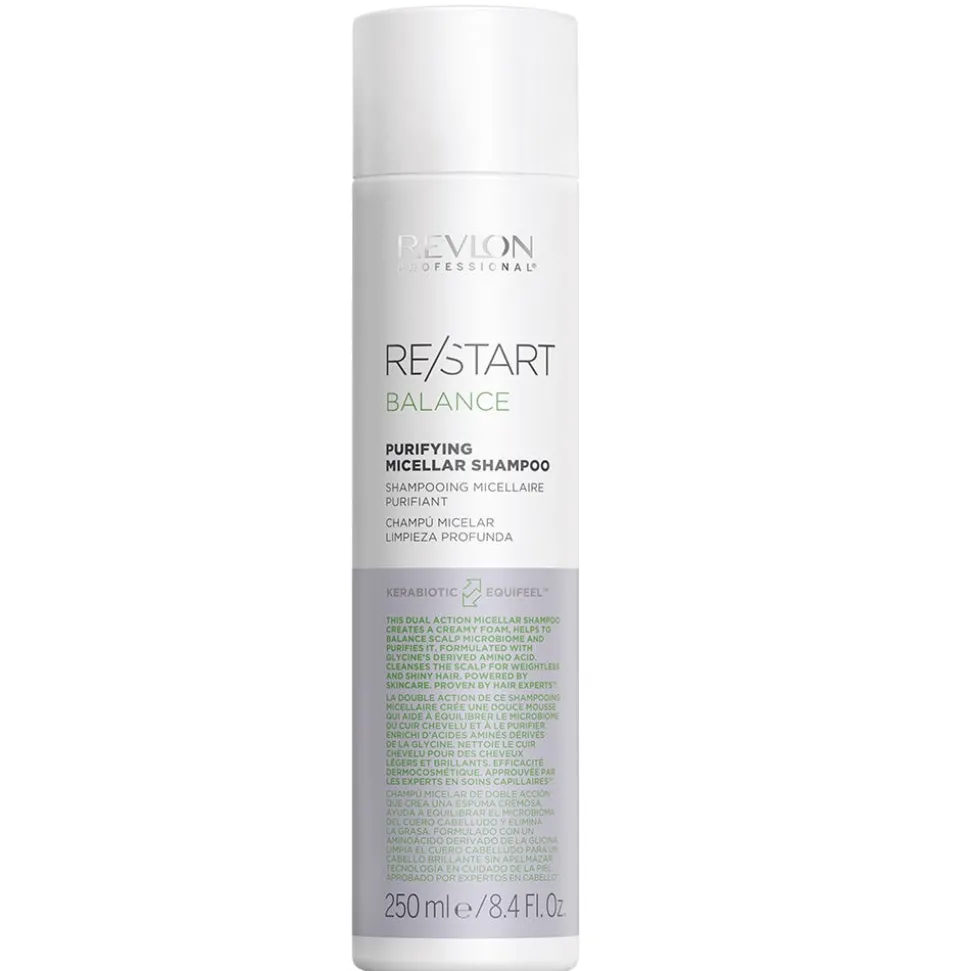 Das Revlon Re/Start Purifying Micellar Shampoo erzeugt einen cremigen Schaum, hilft das Mikrobiom der Kopfhaut auszugleichen und reinigt sie. Formuliert mit der von Glycin abgeleiteten Aminosäure, reinigt das Shampoo die Kopfhaut für glänzendes, schwereloses Haar.