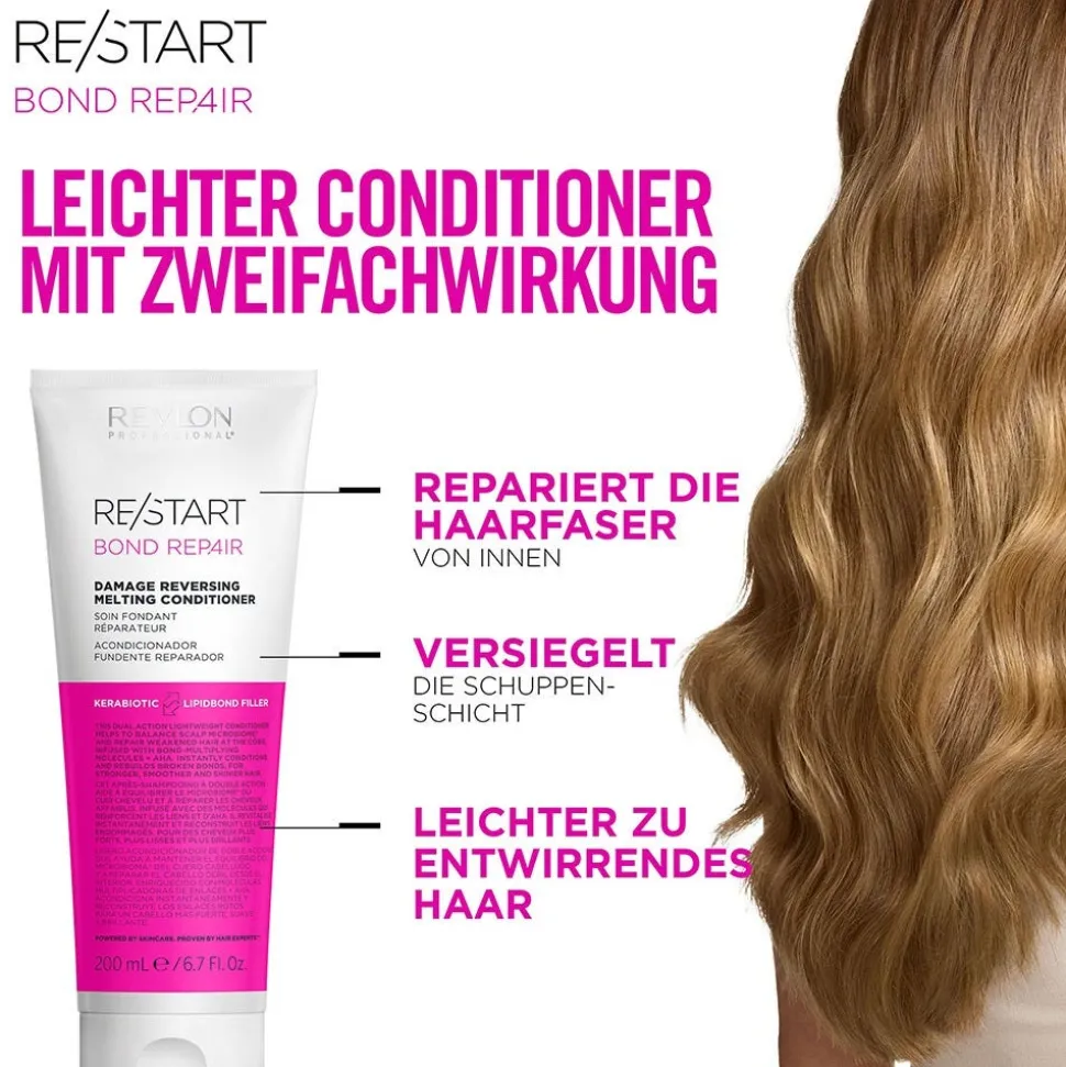 Der Revlon Re/Start Restorative Melting Conditioner hilft, das Mikrobiom der Kopfhaut auszugleichen* und stärkt schwaches Haar. Formuliert mit biomimetischem Ceramid und bindungsbildenden Molekülen, rekonstruiert es das Haar von innen und sorgt so für eine glatte und versiegelte Haaroberfläche.
