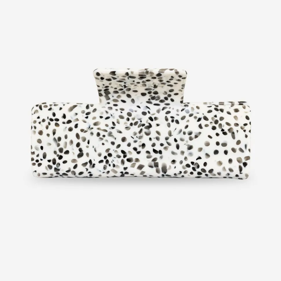 Die Sasstie Brick Dalmatiner vereint praktische Funktionalität mit einem stilvollen sowie einzigartigen Design. Sie besticht durch ihre markante, strukturierte Form und sorgt dafür, dass auch dickeres oder längeres Haar sicher gehalten wird, ohne zu verrutschen. Perfekt für alle, die eine zuverlässige Lösung für ihren Haarstyling-Alltag suchen.