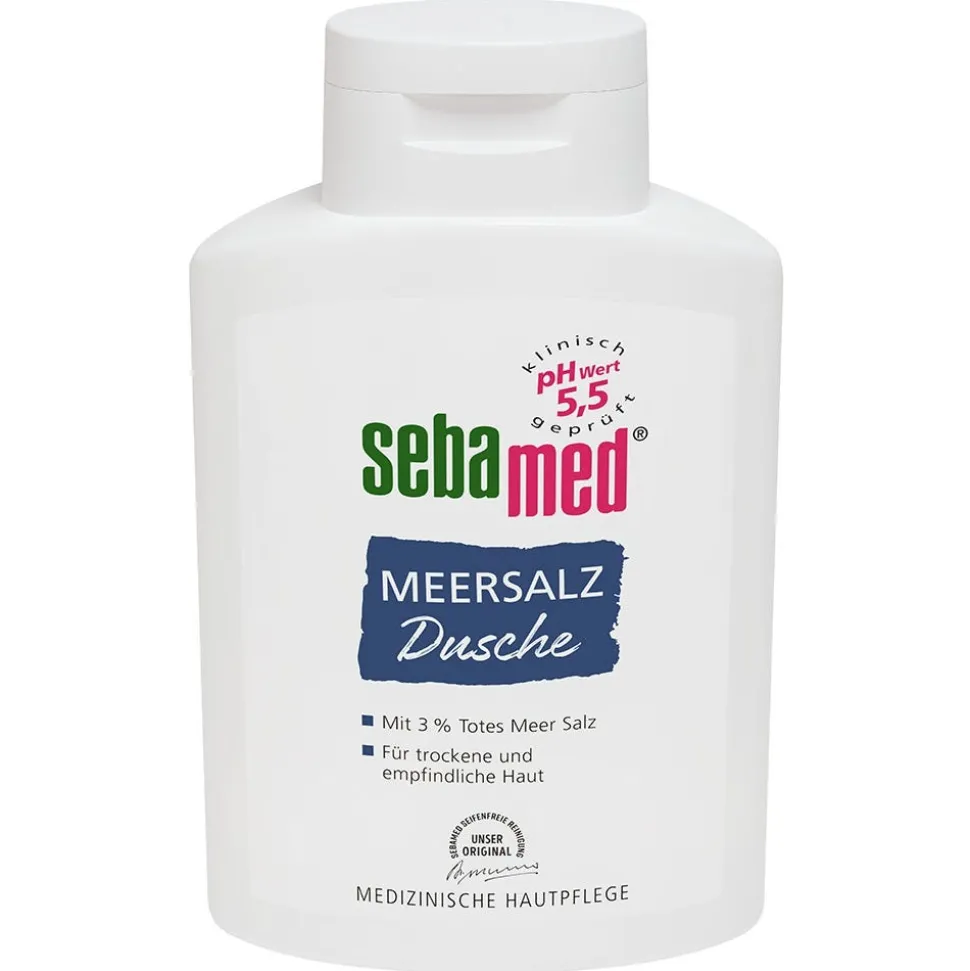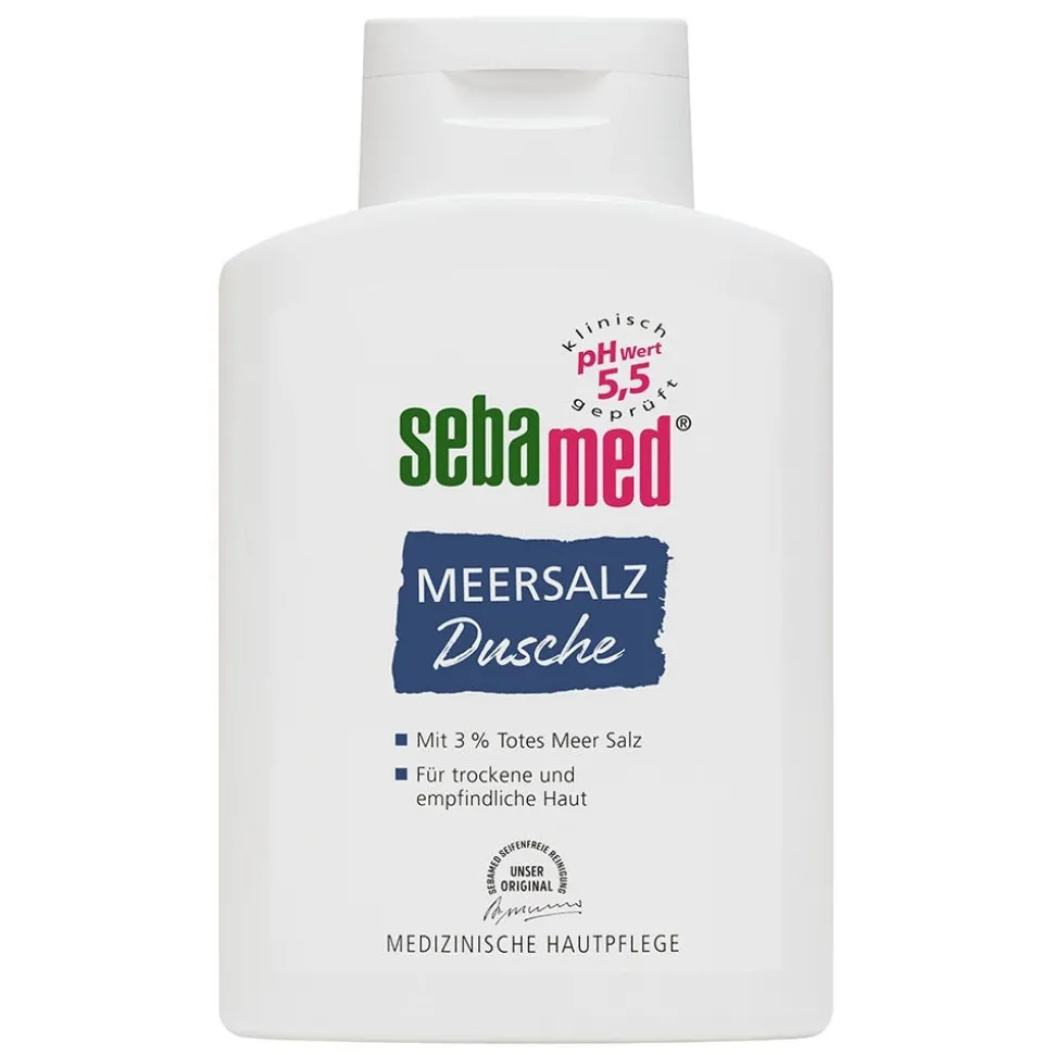 Die sebamed Meersalz Dusche hat eine milde Pflegeformel mit original Totes Meer Salz Mineralien und reinigt seifenfrei. Dabei erfrischt die Meersalz Dusche nicht nur, sondern bewahrt auch die natürliche Feuchtigkeitsbalance der Haut und pflegt sie dabei sanft. Wirksamkeit und Verträglichkeit sind dermatologisch/klinisch getestet. Die Dusche ist frei von Mikroplastik, PEG und Silikonen.