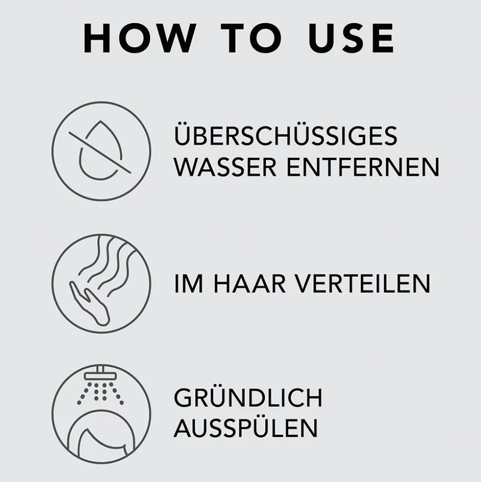 Überschüssiges Wasser aus dem Haar drücken. Mit dem Sebastian Penetraitt Conditioner durch das Haar gleiten. An den Spitzen mehr verwenden. Sorgfältig ausspülen. Eignet sich am besten für chemisch behandeltes Haar.