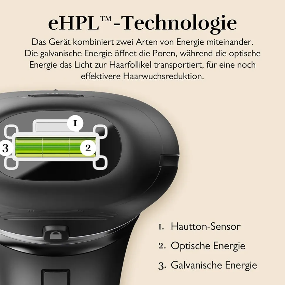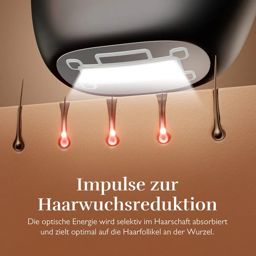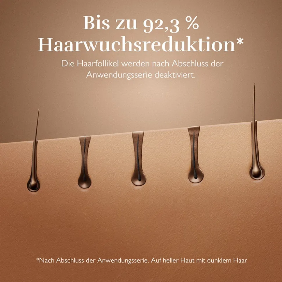 Die Kombination aus optischer und galvanischer Technologie hat sich klinisch bewährt. Unabhängige Untersuchungen haben gezeigt, dass dieses Haarentfernungsgerät sicher und effektiv in einer typischen häuslichen Umgebung verwendet werden kann. Das Gerät ist einfach in der Anwendung und führt zu einer Haarreduzierung von bis zu 92,3 % nach sechs Sitzungen im Abstand von zwei Wochen zwischen den einzelnen Sitzungen.
