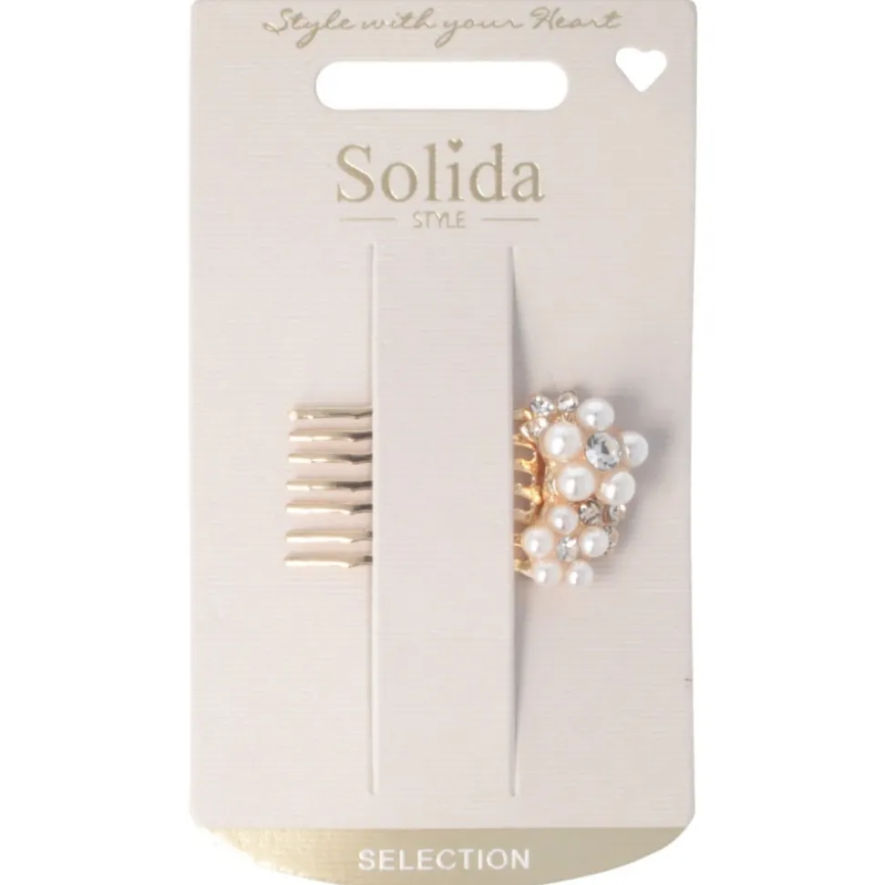 Der Solida Einsteckkamm gold Perle sorgt mit aufwendigen Perlenapplikationen in gold für einen glamourösen Auftritt.