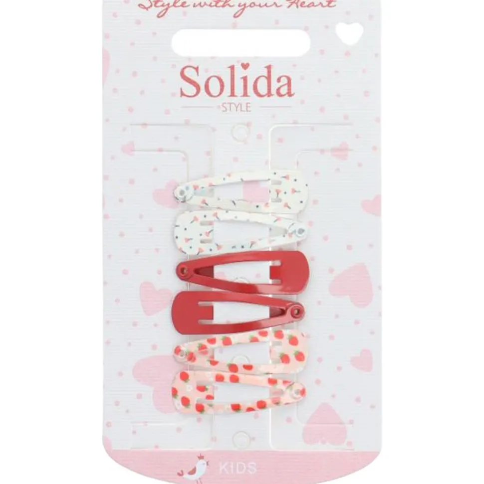 Die Solida Haarclips mit Print überzeugen mit niedlichen Mustern und sind ideal, um lose Strähnen zuverlässig zu fixieren. Sie bieten sicheren Halt und setzen verspielte Akzente im Kinderhaar – praktisch und süß zugleich.