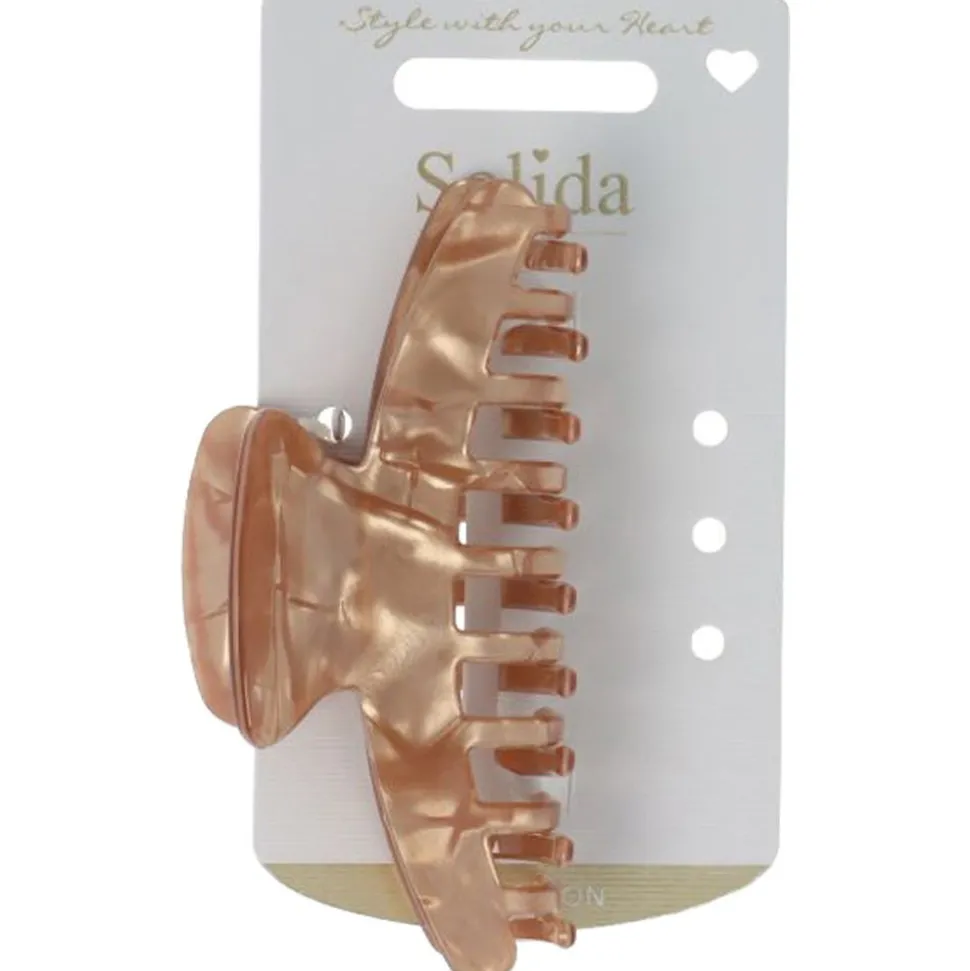 Die Solida Haarklammer Acryl Marmoriert kombiniert Funktionalität mit stilvollem Design. Der edle Perlmutt- bzw. Marmor-Effekt verleiht jeder Frisur eine moderne, feminine Note. Ideal für Hochsteckfrisuren, Half-Up-Styles oder das schnelle Fixieren im Alltag – ein eleganter Begleiter für jeden Look.