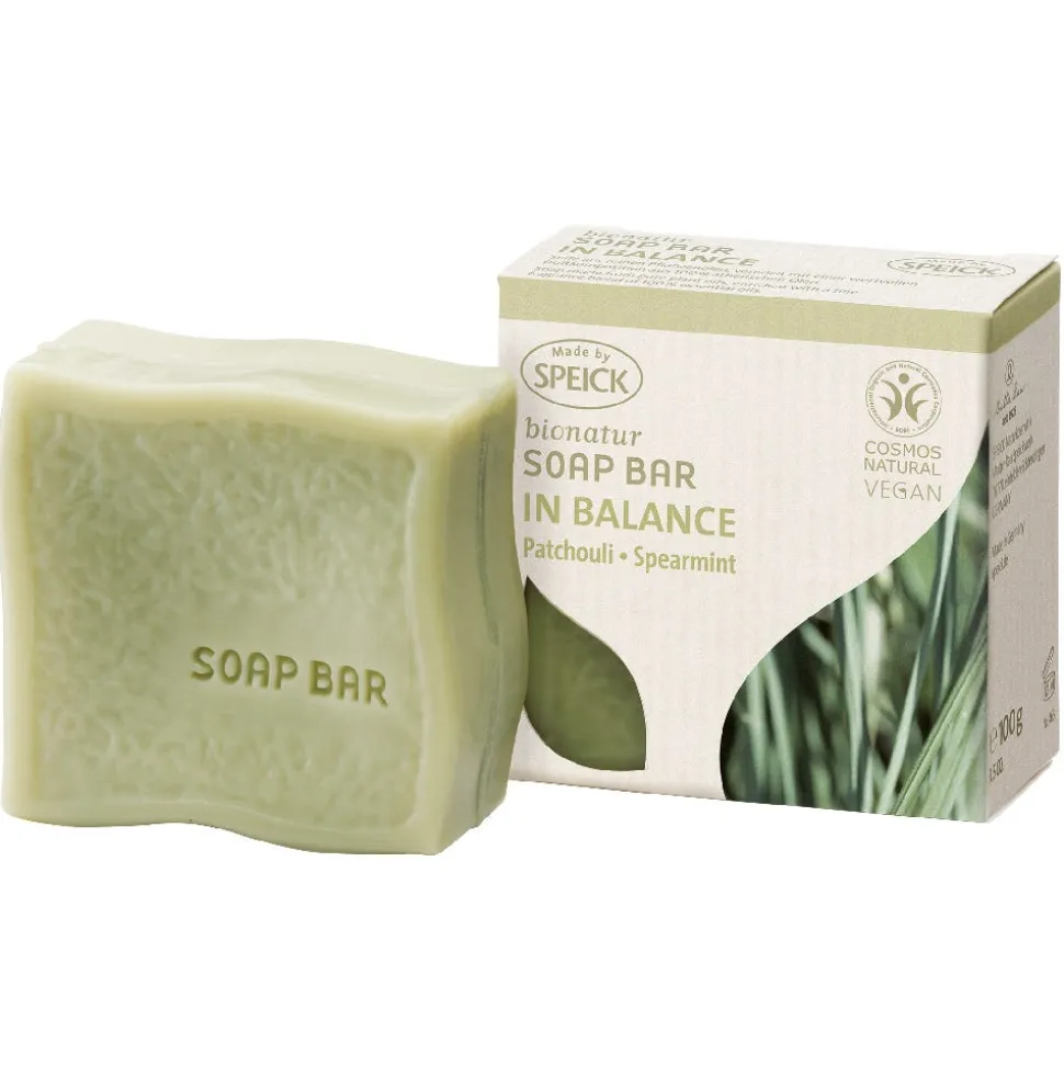 Die SPEICK Bionatur Soap Bar in Balance aus reinen Pflanzenölen ist mit einer wertvollen Duftkomposition aus 100% ätherischen Ölen veredelt. Hergestellt nach der traditionellen Seifenrezeptur von Speick Naturkosmetik aus hochwertigem Palm-, Kokos- und Oliven-Öl. Die Seife wirkt mild reinigend mit reichem, sahnigem Schaum und einem hohen Anteil an pflanzlicher Rückfettungscreme. Reine ätherische Öle wie Orangen-, Patchouli-, Krauseminz- und Galbanum-Öl verwöhnen mit einem sinnlichen Dufterlebnis. Die inspirierende Duftkomposition fördert das Wohlbefinden, bringt Körper und Seele in Einklang, wirkt ausgleichend und beruhigend.