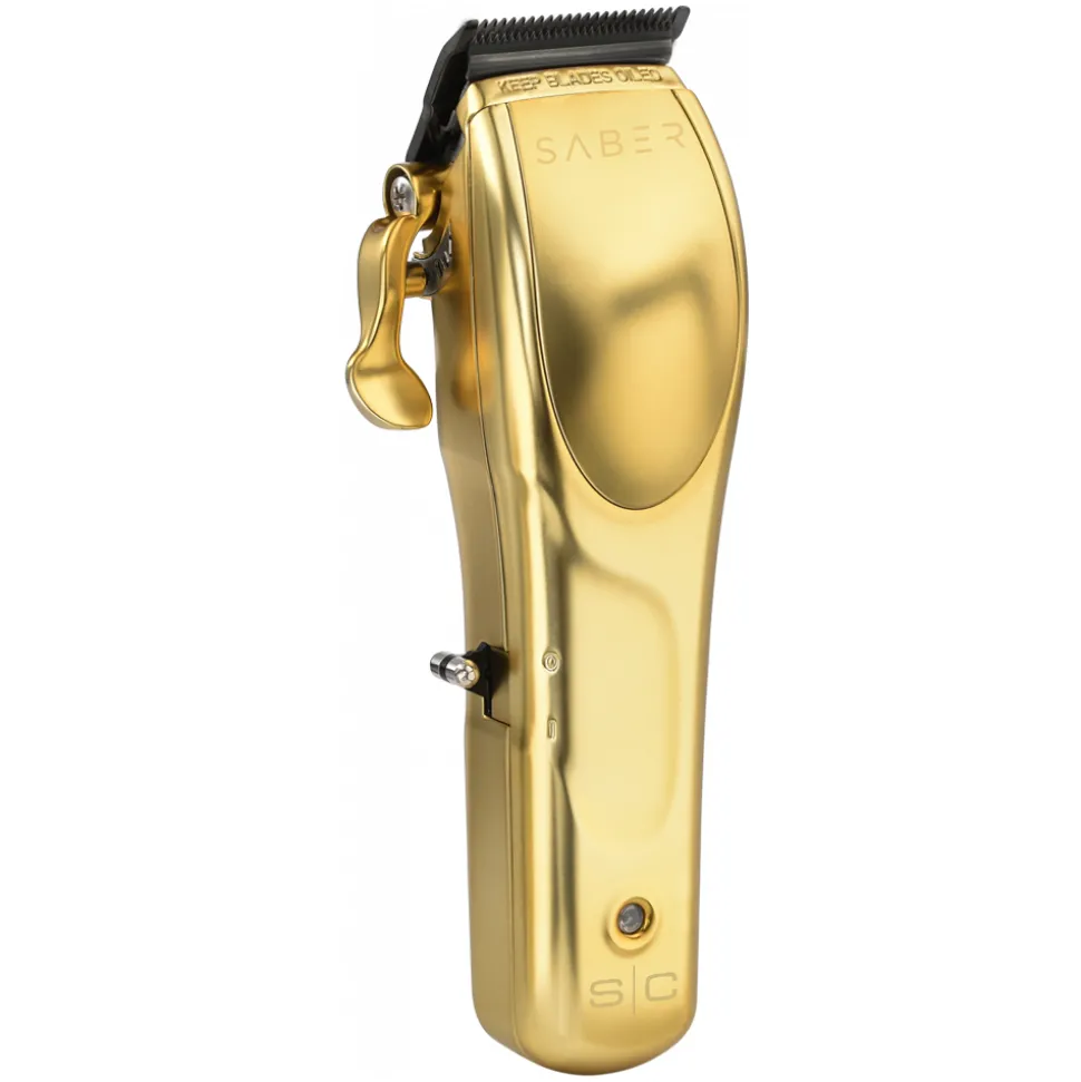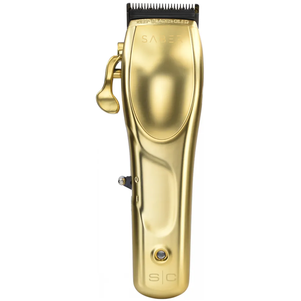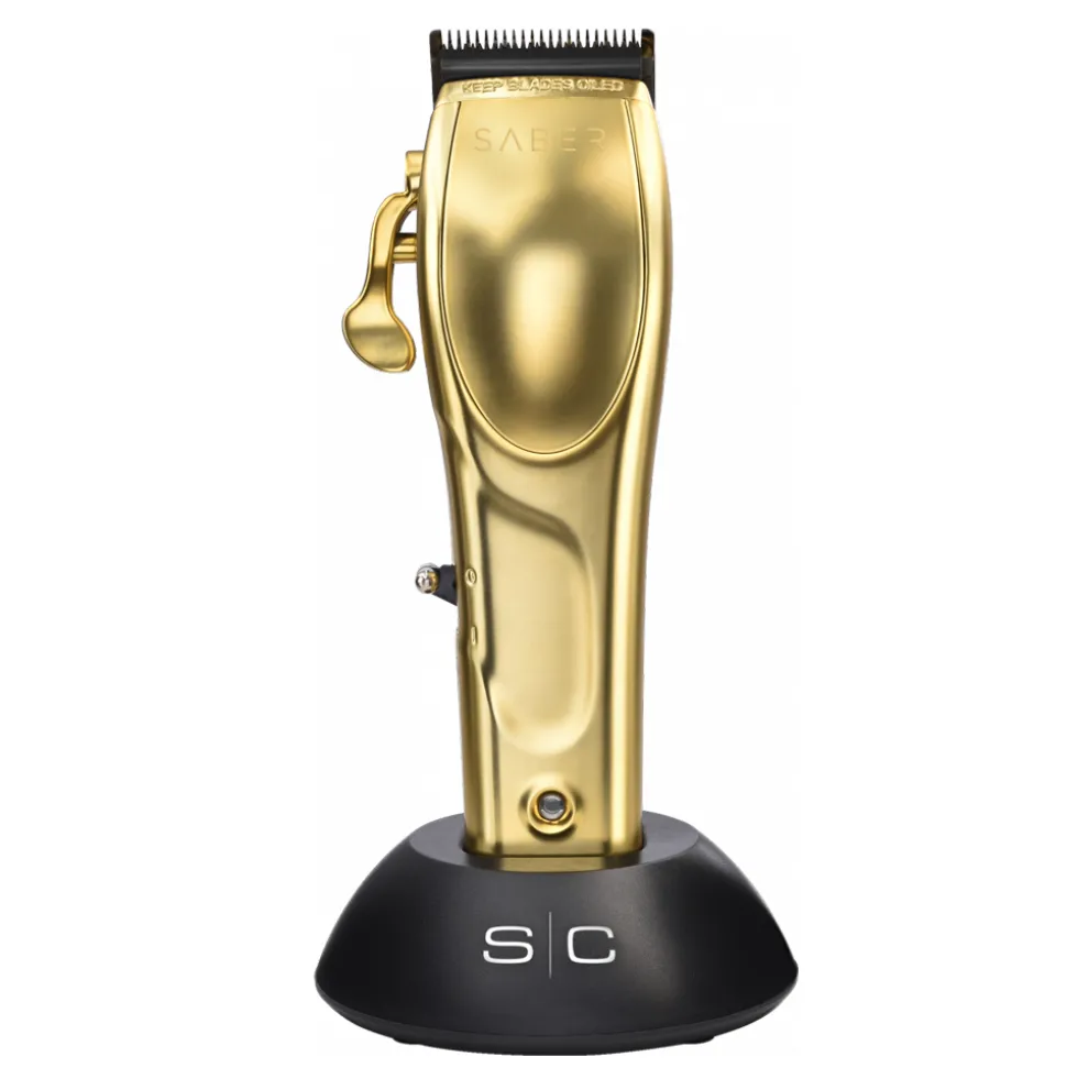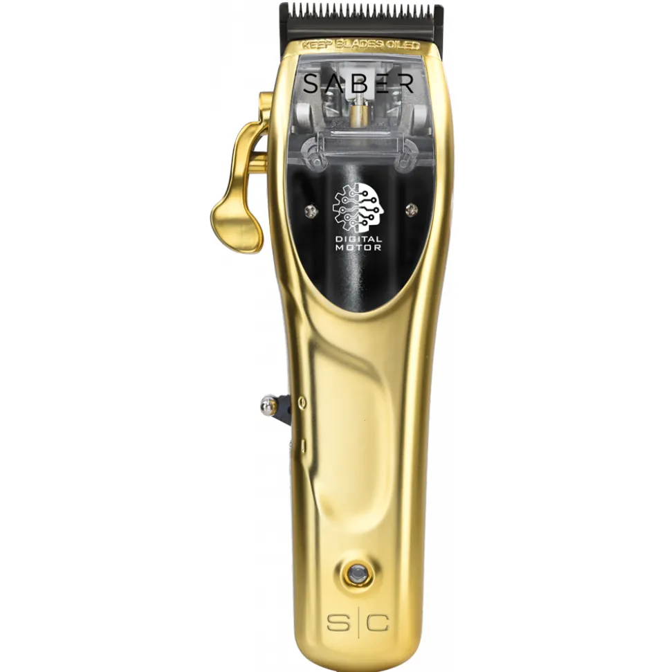 Der Stylecraft Saber Haarschneider liegt gut in der Hand und sein digitaler bürstenloser Motor läuft mit 7.500 Umdrehungen pro Minute für einen gleichmäßigen und leichten Schnitt. Der Haarschneider wird im Metalgehäuse in edlem, matten gold geliefert. Die mitgelieferte transparente Abdeckung lässt sich durch einfaches Lösen der Schrauben anbringen und gibt den Blick auf den Motor frei.
