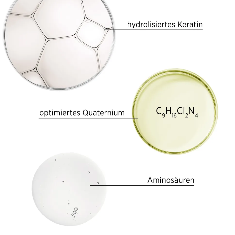 2. Optimierte Quaterniumkomponenten: Füllen die geschädigten Stellen auf und glätten die Haaroberfläche