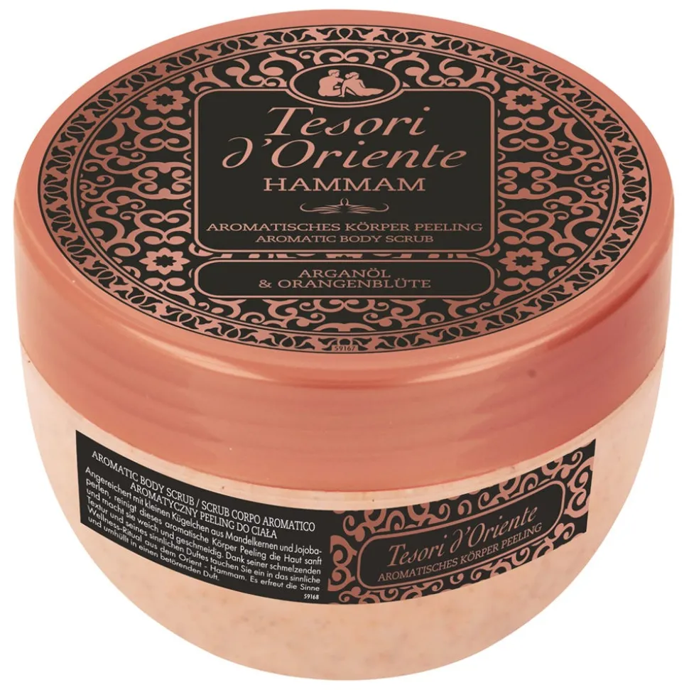 Das Tesori d’Oriente Körperpeeling Hammam ist inspiriert von einem unvergesslichen Besuch in einem arabischen Thermalbad mit seinen einzigartigen Wellness-Zeremonien und aromatischen Körperbehandlungen. Bekannt als Schönheits-Elixier, verwöhnt Argan-Öl die Haut mit intensiver Pflege und hinterlässt dabei ein seidig-weiches Gefühl – eine aromatische Körperbehandlung, um Körper und Seele zu reinigen. Dank der verführerischen Duftkreation aus sinnlichen Orangenblüten und würzigen Noten wird das heimische Badezimmer in kürzester Zeit zur Wohlfühloase. Mit seiner edlen Optik und dem traumhaften Duft ist das Körper Peeling zudem nicht nur ein echtes Highlight im eigenen Zuhause, sondern auch eine schöne Geschenkidee, um die Liebsten gedanklich in den Orient verreisen zu lassen.