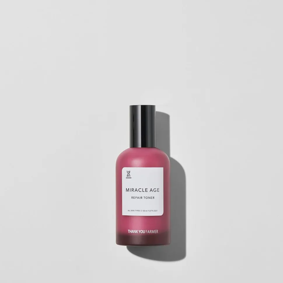 Der Thank You Farmer Miracle Age Repair Toner versorgt die Haut mit Feuchtigkeit und nährt sie, um die Bildung von Kollagen und Elastin zu fördern. Idealer Hauttyp: Trocken