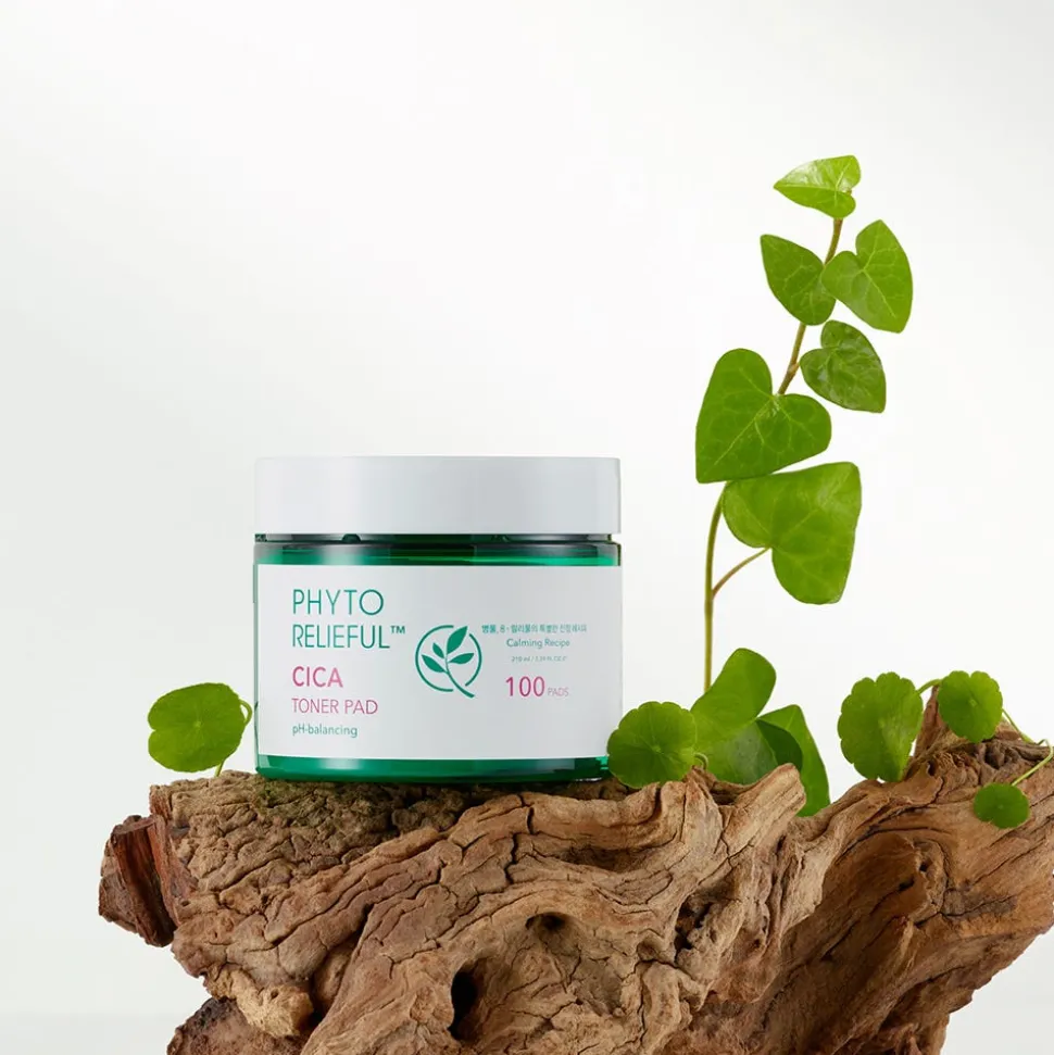 Das pH-ausgleichende Thank You Farmer Phyto Relieful Cica Toner Pad glättet eine raue Hauttextur und bietet effektive beruhigende und hydratisierende Pflege.