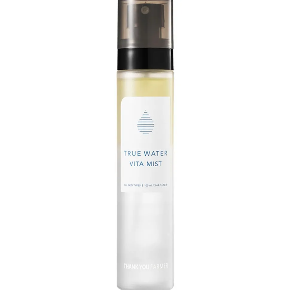 Der Thank You Farmer True Water Vita Mist ist ein feuchtigkeitsspendendes Spray, der müde Haut mit 10 essentiellen Vitaminen, Avocadoöl und Weißdornöl revitalisiert. Idealer Hauttyp: Trocken