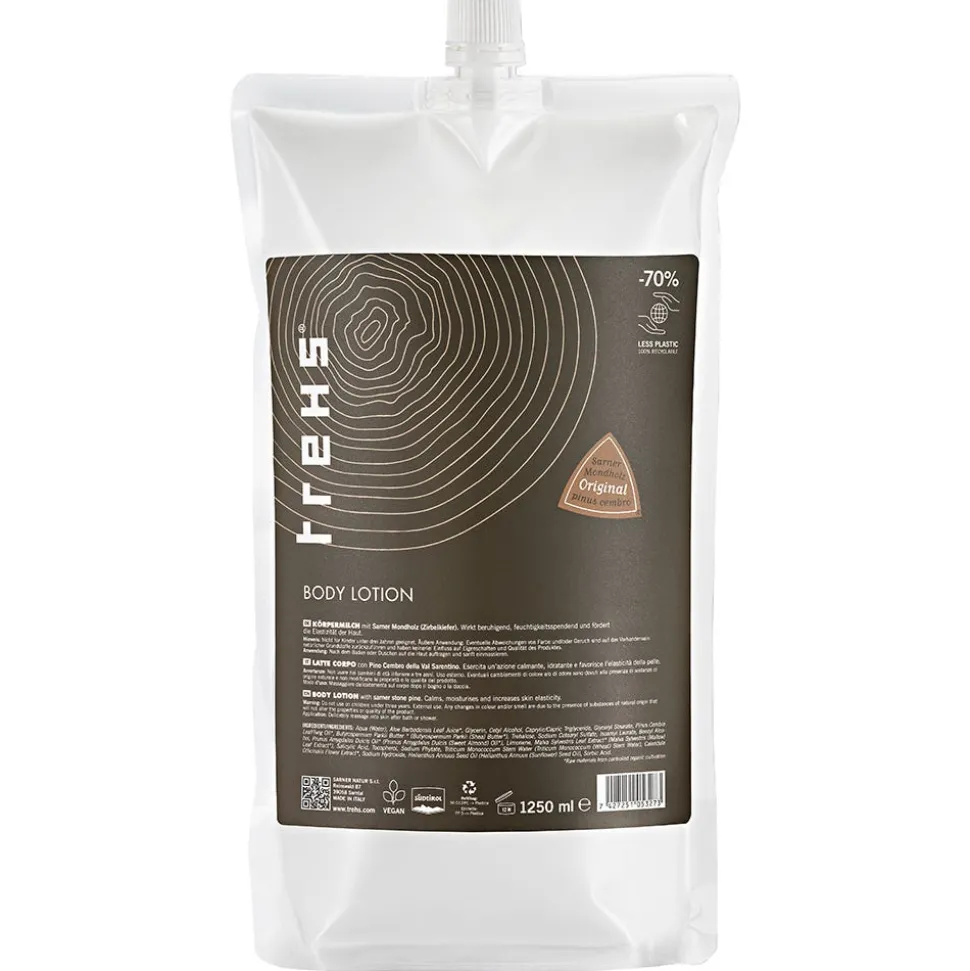 Die Trehs Sarner Mondholz Body Lotion Refill bietet eine beruhigende Wirkung und spendet der Haut reichlich Feuchtigkeit. Ihre leichte Textur zieht schnell ein, ohne ein klebriges Gefühl zu hinterlassen und hinterlässt stattdessen ein seidig-glattes Finish. Ideal für die tägliche Anwendung, um die Haut zu pflegen, zu beruhigen und mit Feuchtigkeit zu versorgen, während der erfrischende Duft der Zirbe die Sinne belebt. Die Refill-Packung ist besondern praktisch und nachhaltig.