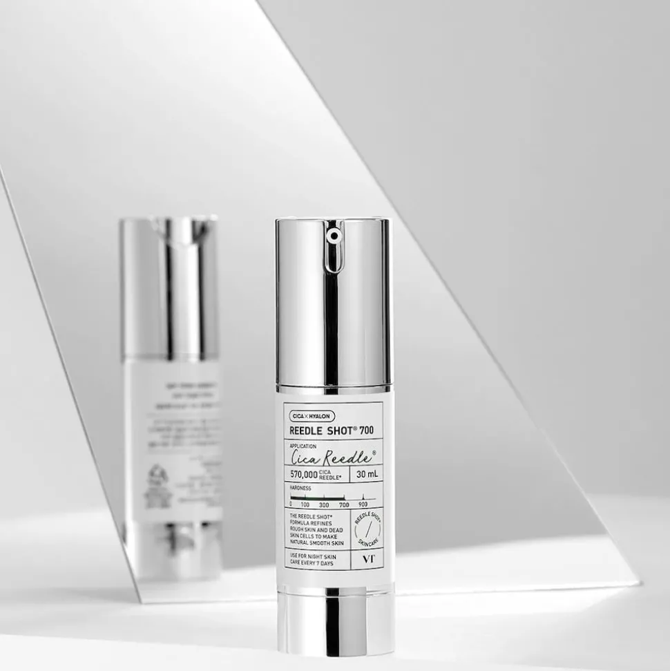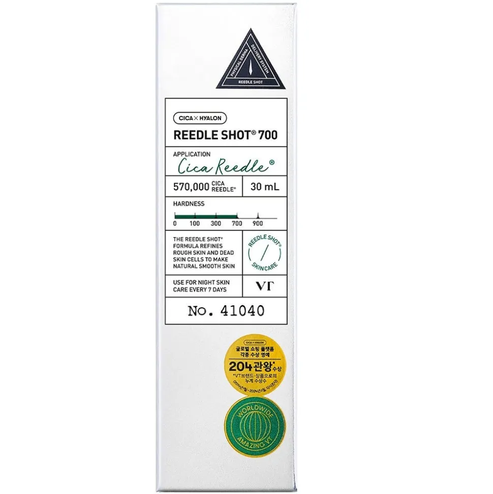 Das VT COSMETICS Reedle Shot 700 ist das intensivste Serum von VT COSMETICS und revolutioniert die Gesichtspflege mit der innovativen Cica Reedle™-Technologie. Mit über 570.000 Mikronadeln natürlichen Ursprungs ermöglicht dieses hochkonzentrierte Serum das tiefe Eindringen von Wirkstoffen wie Hyaluronsäure, Centella Asiatica-Extrakt und Propolis in die Hautschichten. Es spendet intensive und langanhaltende Feuchtigkeit, beruhigt Irritationen, stärkt die Hautbarriere und verbessert sichtbar die Elastizität. Bei regelmäßiger wöchentlicher Anwendung werden Poren reduziert, Hauttextur und Hautton verfeinert und die natürliche Hauterneuerung unterstützt – für ein glattes, straffes und strahlendes Hautbild wie nach einer professionellen Behandlung.