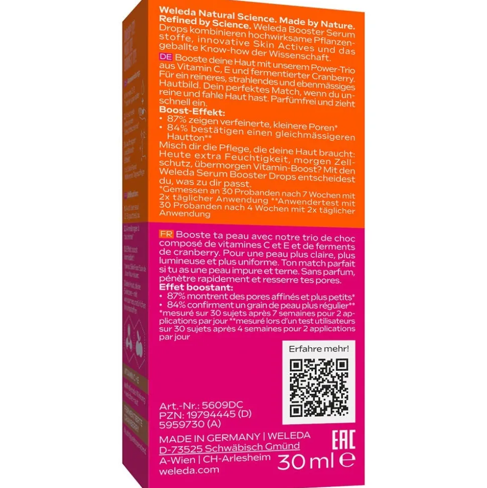 Du wünschst dir ein ebenmäßiges, strahlendes Hautbild? Die Weleda Pore Refining Serum Booster Drops mit ihrer parfümfreien, tiefenwirksamen Formel mit Vitamin C, Vitamin E und fermentierter Cranberry verfeinern die Poren und sorgen für einen gleichmäßigeren Hautton. Das Ergebnis ist ein reinerer und feinerer Teint. Unreine und fahle Haut ist nach regelämßiger Anwendung gepflegt und ebenmäßig. Die Pore Refining Serum Drops können pur auf die Haut gegeben oder in die Gesichtscreme gemischt werden und ziehen sofort ein.
