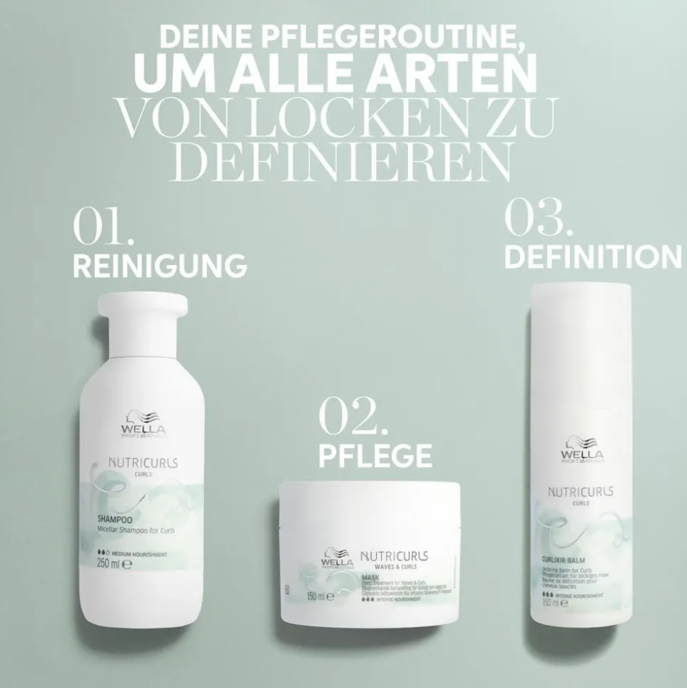 Für Locken-Definition, die hält! Das Wella Professionals Care Nutricurls Curlixir Balm ist ein leichter, nährender Pflegebalsam, der lockiges Haar pflegt und für leichten Halt sorgt. Ohne Ausspülen verleiht er dem Haar Form und Sprungkraft.